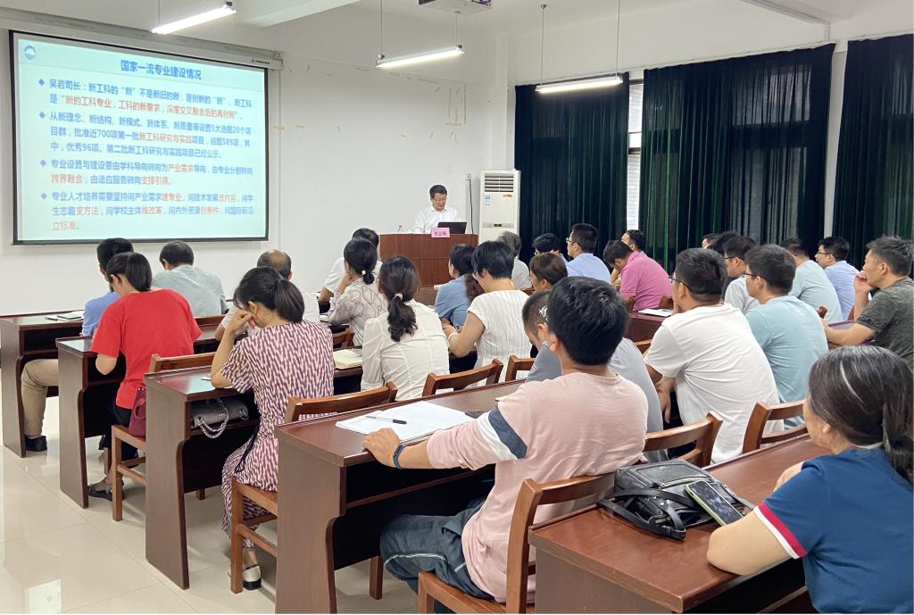 最后,他强调建设一流专业/课程要处理好学科、专业、教师和课程的关系,学科建设可以促进专业建设,但不能代替专业建设;高水平的课程需要高水平的学科支撑,需要我们有意识、自觉地把学科建设的成果转化为课程;要摆正教师与学生的关系、教学与科研的关系、授业与解惑的关系和理论与实践的关系,才能做好国家一流本科课程建设,也才能做好国家一流本科专业建设。要关注建设过程,发挥自身优势,从教材建设、师资队伍提升、教学方法改革、学科建设、实践环节与条件等方面全面发力,建设自己的专业特色。