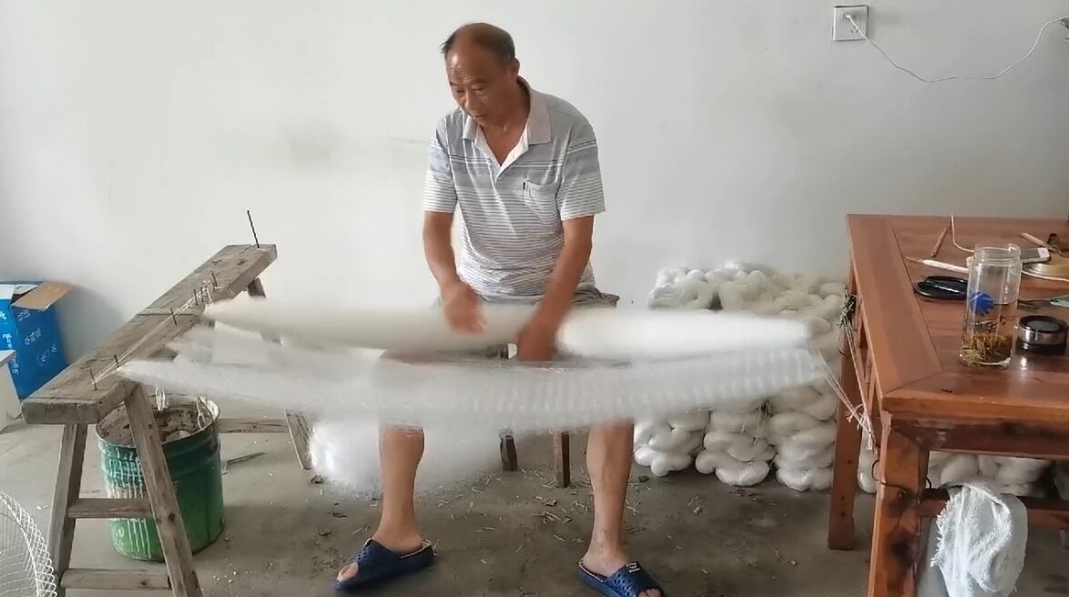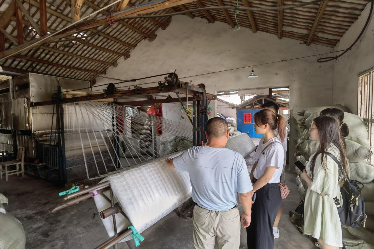 大汪村是省级美丽乡村之一,也有“中国渔网第一村”的美誉。调研团队行走在村庄里,四面传来此起彼伏、不绝于耳的织机声。在这里,团队通过走访村民的方式,了解到了渔网的发展历史与传承,也参观学习了散户参与的渔网产业链环节。