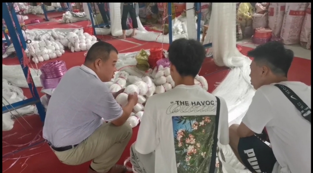 7月20日,9999js金沙老品牌“乡村振兴背景下小镇特色产业发展调研”社会实践调研队在安徽省巢湖市槐林镇对当地的渔网产业进行调研学习。