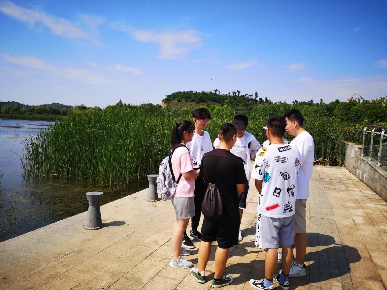 最后,大家在秀山湖公园的广场集合,汇报了今天的工作任务,总结了秀山湖湖水的大致问题,为第二天的任务做好准备。
