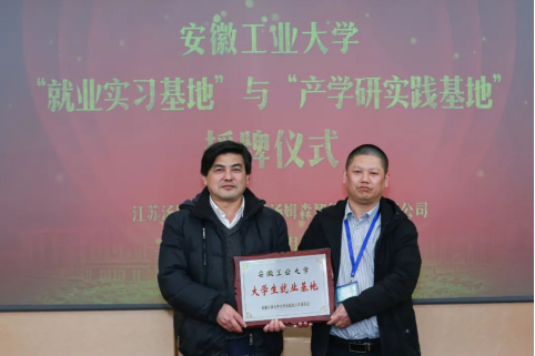 刘庆运和汤建华共同为“安徽工业大学产学研实践基地”揭牌并签订合作协议,李克明和张正宝共同为“安徽工业大学就业实习基地”揭牌并签订合作协议。签约仪式后,刘庆运一行深入公司智能化样板车间等生产现场实地考察。(撰稿:董春辉 审核:李克明)