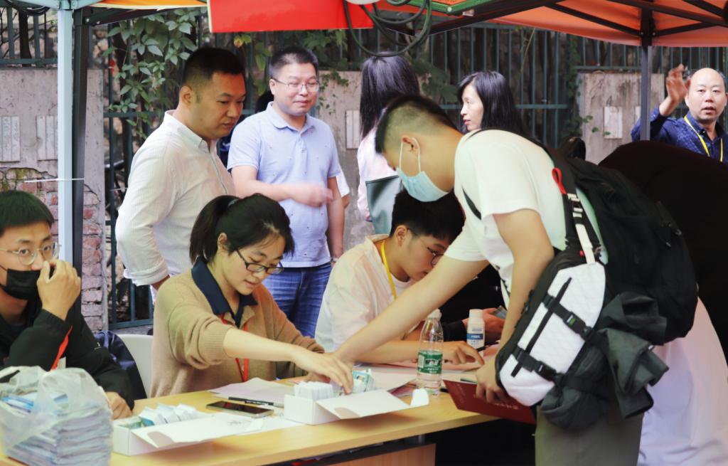 早上6点钟,9999js金沙老品牌的迎新志愿队伍便在佳山校区四号楼楼下准备就绪,等待着新生们的到来。报到全流程无缝式衔接,有条不紊,高效便捷。引导讲解、维持秩序、搬运行李、宿舍入住……志愿者们忙前忙后,乐此不疲。学院领导、2020级辅导员也始终在迎新现场坚守岗位,关注迎新秩序。