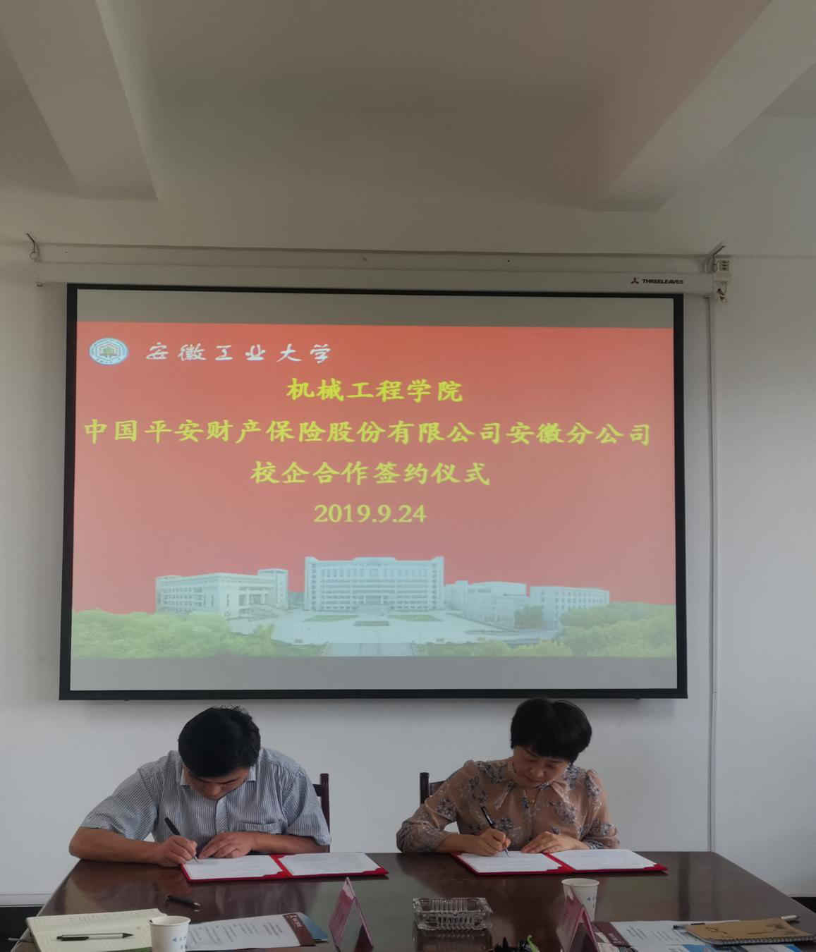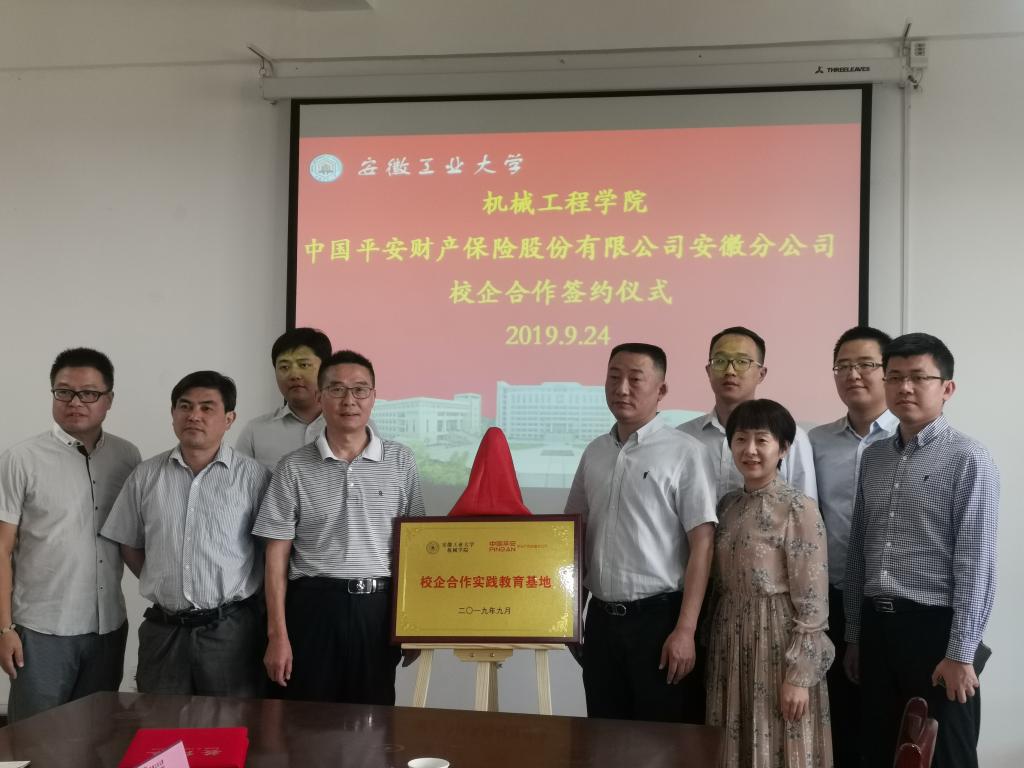 9月24日上午,9999js金沙老品牌与中国平安财险股份有限公司安徽分公司“校企合作”签约仪式在机械楼302会议室举行。中国平安财险股份有限公司马鞍山中心支公司总经理陈青、中国平安财产保险股份有限公司安徽分公司人力资源部经理孔凡荣、安徽分公司车意理赔部经理吴刚、安徽分公司车意理赔部车物管理团队经理朱佳、安徽分公司人力资源部发展规划室经理方业成、马鞍山中心支公司理赔部经理张永鹏、9999js金沙老品牌党委书记徐柳根、9999js金沙老品牌副院长李克明等出席签约仪式。