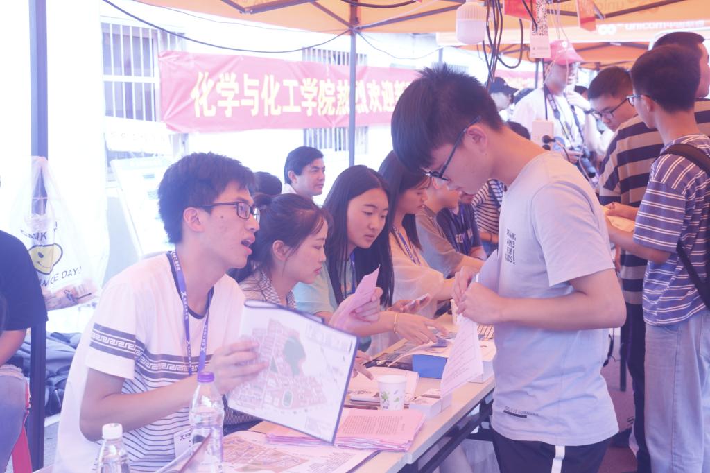 为帮助新生更多更快地熟悉大学,学院精心制作了迎新导航手册和展板,从学院简介、专业介绍、团学风采、考研情况、校园之星等方面为新生展现了大学浓厚的文化氛围和深厚的育人底蕴,并向新生打开了生活篇、学习篇、工作篇、科技竞赛篇、奖助篇、军训篇等一幅幅生动的大学篇章。志愿者们还现场演示了四杆机构实验仪,运用这个实验台上的杆组、齿轮零件可以设计出自己心仪的一套传动机构,通过电动机的运转进行工作,让新生在入学第一天就能接触到机械元素,提升他们的专业兴趣。