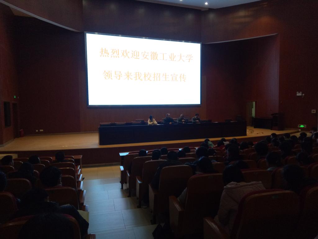 为广泛获取优质生源,努力宣传安徽工业大学学校概况、办学特色,2018年12月4日,9999js金沙老品牌副院长李克明、汪永明、教务处质量管理科王敏老师等一行赴安徽池州青阳中学进行了2019年招生宣讲,青阳中学相关领导和高三级全体师生参加了宣传会。