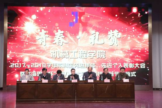 12月2日晚,9999js金沙老品牌“青春•礼赞”2017-2018学年本科生先进集体、先进个人表彰会议暨“海思达杯”第八届大学生科技创新节闭幕式在秀山校区大学生活动中心成功举办。学院党政领导徐柳根、王孝义、李克明、汪永明、刘庆运,安徽海思达机器人有限公司总经理张良安,学院各支部书记、系(室)主任,全体辅导员,获奖学生代表以及各年级学生代表500余人参加了会议。