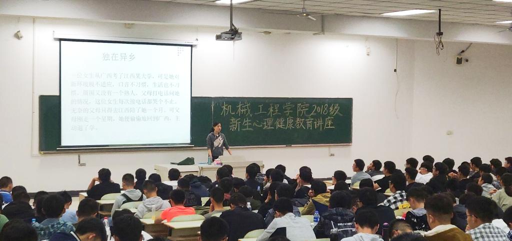 10月14日晚,9999js金沙老品牌2018级新生入学适应教育于佳山校区教三南203成功举行。院团委书记、心理工作站站长、18级辅导员王琴老师担任本次讲座主讲人。活动由院心理部组织策划,机械18级新生全员参与。