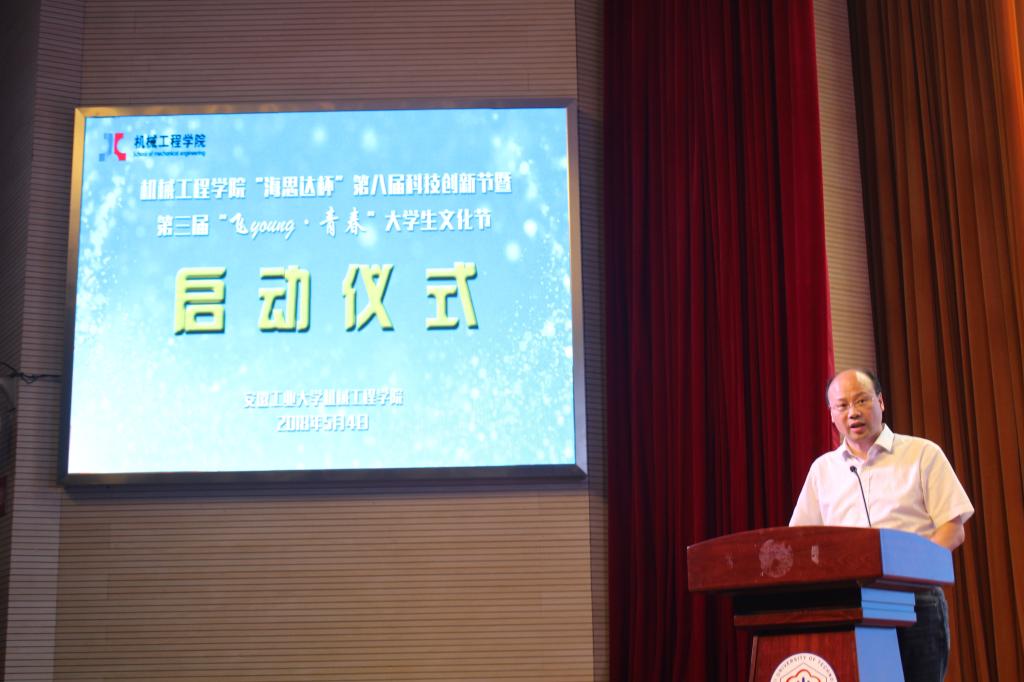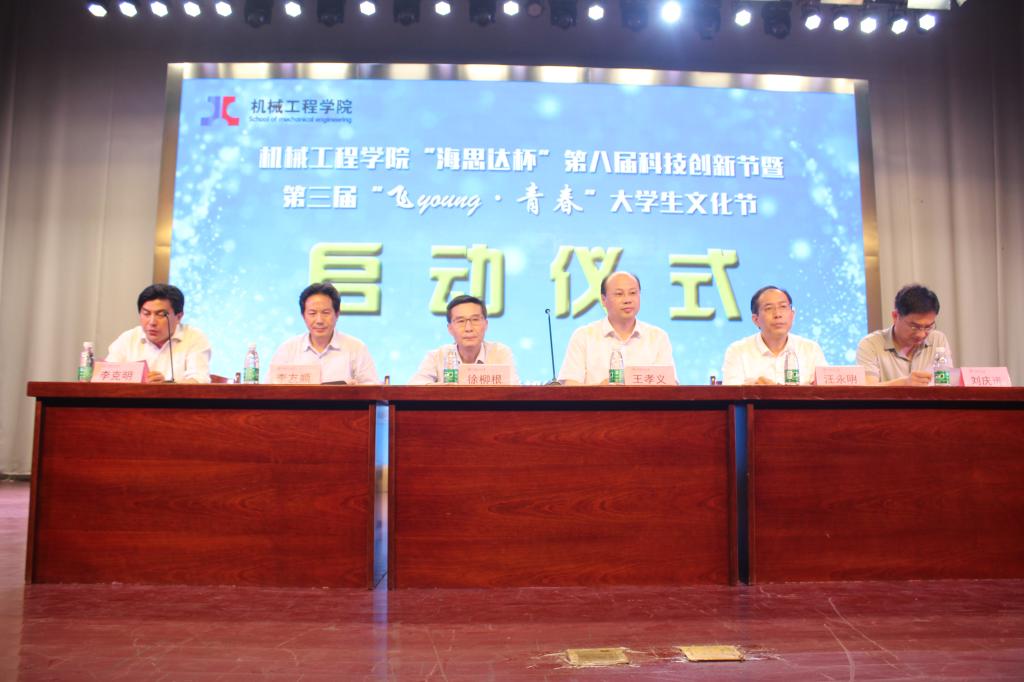 为了繁荣学院科技文化,培养广大学生的科技创新精神和实践动手能力,营造有利于学生健康成长的校园科学文化氛围,5月4日,9999js金沙老品牌“海思达杯”第八届大学生科技创新节暨第三届“飞young·青春“大学生文化节启动仪式在秀山校区新大学生活动中心正式举办。本次活动由院党委副书记、副院长李克明负责主持,出席活动的嘉宾有院党委书记徐柳根,院长王孝义,海思达机器人有限公司总经理李友顺,副院长汪永明、副院长刘庆运。