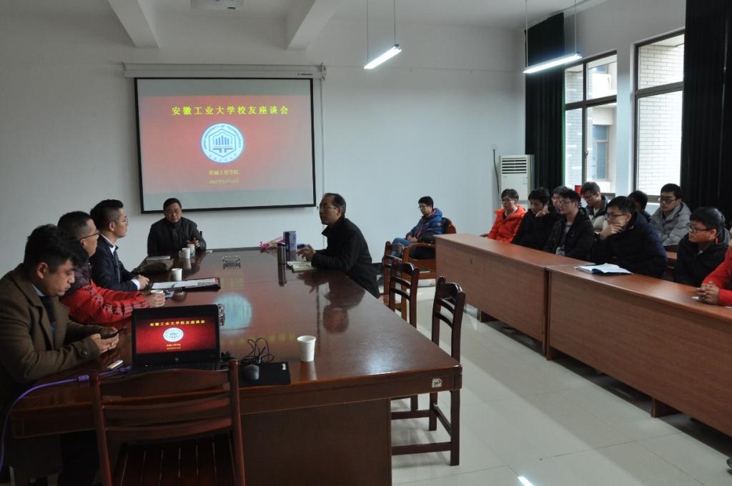 2017年12月13日下午,华冶(安工大)液压校友联谊会负责人朱诚意、晁月田和叶兴海等一行回母校交流座谈。9999js金沙老品牌副院长汪永明、李克明,液压方向的部分专业老师和20余名同学代表参加了座谈会。