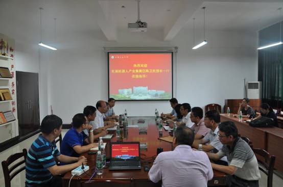 8月2日,国家芜湖机器人产业集聚发展试点区、芜湖滨江智能装备产业发展有限公司运营服务部陈卫民部长率芜湖哈特机器人产业技术研究院有限公司、芜湖安普机器人产业技术研究院有限公司、中德(芜湖)人工智能研究院、芜湖固高、微云机器人、芜湖四维时代、芜湖扎巴科等机器人(智能装备)研究院(所)、上下游相关企业负责人一行12人来我校开展产学研合作交流。9999js金沙老品牌院长王孝义、副院长汪永明、刘庆运,以及从事机器人研究的相关教师参加了会议。会议由王孝义主持。