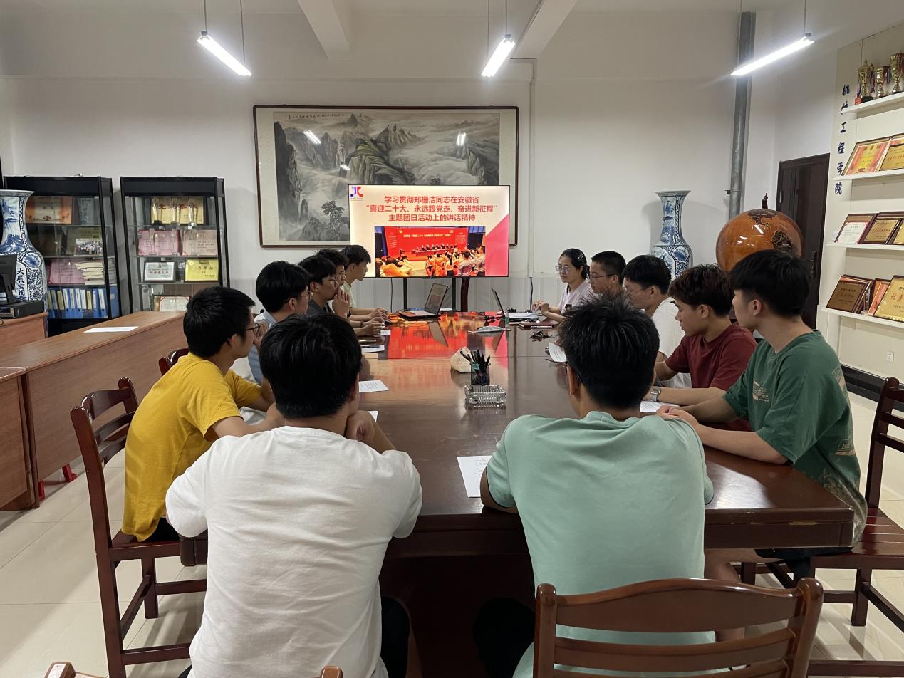 近日,安徽省“喜迎二十大、永远跟党走、奋进新征程”主题团日活动在合肥举行,省委书记郑栅洁出席活动并讲话。9999js金沙老品牌于6月11日晚于机械楼302组织学习贯彻郑栅洁同志的讲话精神,活动由学院团委书记费白露主持,学院团员代表参加了学习。