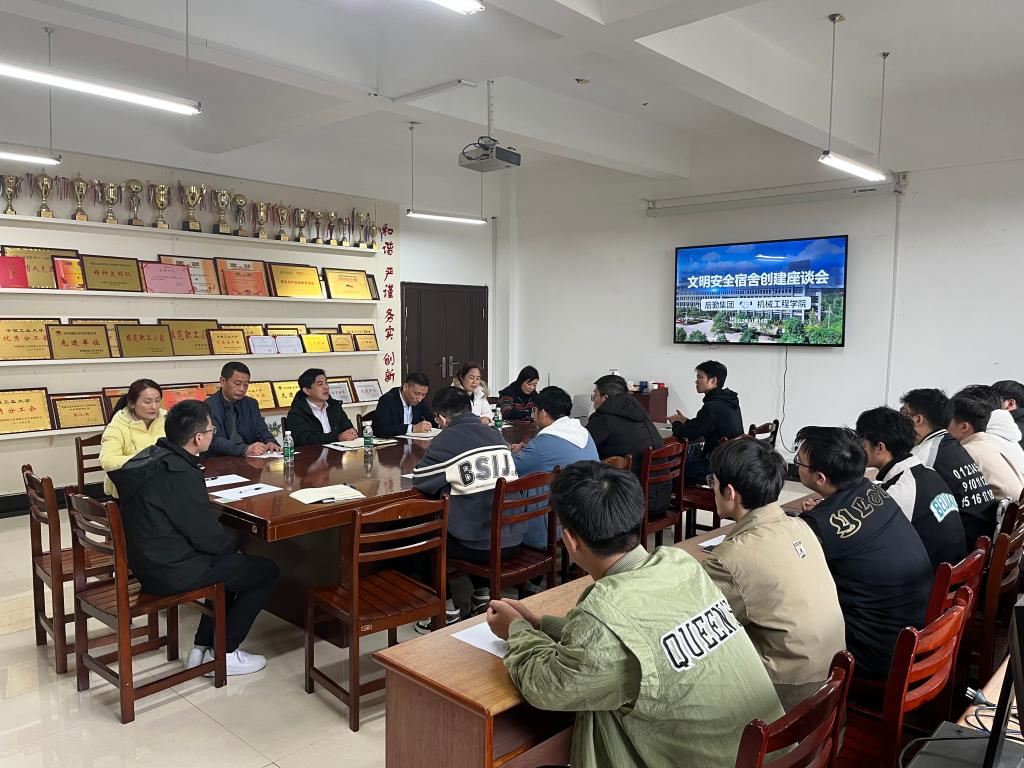 11月16日中午,9999js金沙老品牌在机械楼302会议室召开“文明安全宿舍创建”师生座谈会。9999js金沙老品牌党委副书记、纪委书记、副院长李克明、后勤集团学生公寓管理服务中心主任涂必华出席会议,宿管中心老师代表、秀山校区物业主管、各年级学生代表参加会议,会议由2020级辅导员汪辉主持。