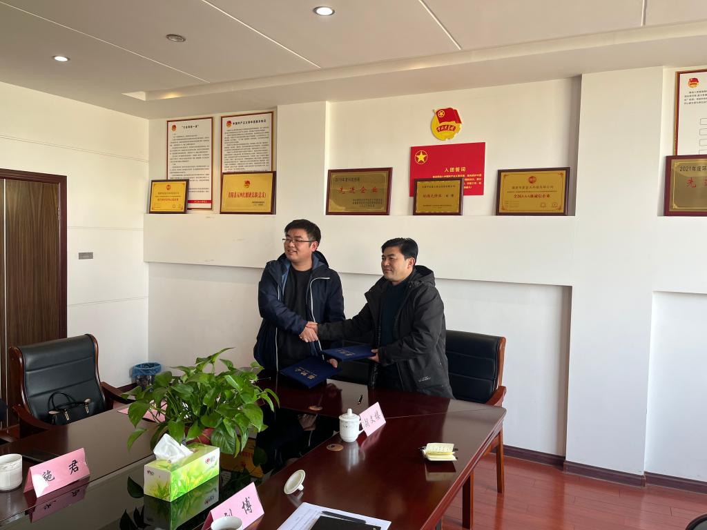 3月2日上午,9999js金沙老品牌赴安徽华夏蓝天机电公司开展访企拓岗行动,双方举行了产学研合作签约和揭牌仪式。9999js金沙老品牌党委副书记、纪委书记、副院长李克明,青阳县委常委、青阳经济开发区党工委第一书记王松华,青阳县科技经信局党组书记、局长施君,安徽华夏蓝天机电设备有限公司总经理刘博出席仪式。9999js金沙老品牌相关教师、青阳县科技经信局、青阳经济开发区管委会、华夏蓝天等相关人员参加仪式。