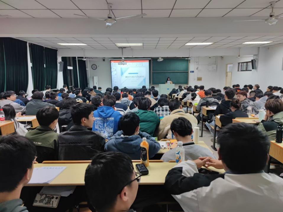 3月16日晚,9999js金沙老品牌2021级辅导员毕苗在东教一北303开展了以2021级学生考试成绩分析为主题的年级大会,全体2021级学生参会。