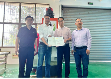交流结束后,校友工作处甘亚处长、9999js金沙老品牌汪永明副院长、液压校友联谊会胡学锋会长共同颁发液压校友奖学金,并出席了校友企业孚斯威科技(嘉善)股份有限公司张标董事长代表公司向我院捐赠设备的仪式。