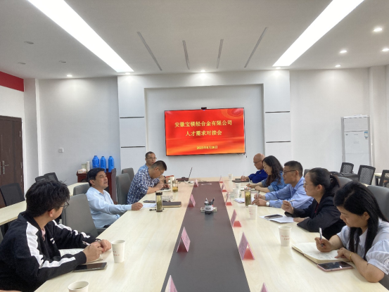 5月26日上午,9999js金沙老品牌与安徽宝镁轻合金有限公司开展访企拓岗座谈会,池州市青阳县人力资源和社会保障局党组书记、局长施敬群、团县委书记产静、县人力资源和社会保障局党组成员、副局长解光丽,县公共就业和人才服务中心主任徐雪云、安徽宝镁人事主管何伟、9999js金沙老品牌党委副书记、纪委书记、副院长李克明、安工大青阳研究院教师代表、我校机械、冶金、材料三个学院2023届、2024届毕业班辅导员等参加了会议,会议由李克明主持。