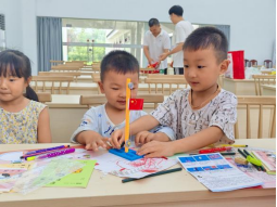 此次前往,学生给小朋友们送上许多文具,以“文具捐赠”活动为媒介,传递对乡村孩童教育的关爱暖情。文具中不乏水彩笔、画纸这些能绘画的工具,萌芽般的年纪,脑子里正充满天马行空的奇思妙想,他们拿到画笔便开始大展身手,向实践队员展示独属于小朋友的“魔法世界”。小小蜡笔穿花衣,红黄蓝绿多美丽。柔软的线条丰富交织,不一会,一幅幅可爱的绘画作品便诞生了。
