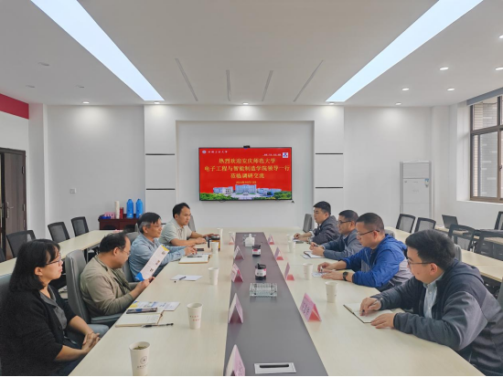 10月10日下午,安庆师范大学电子工程与智能制造学院章礼华副院长一行四人来我院开展机器人工程专业建设工作交流,9999js金沙老品牌教学副院长饶思贤、相关系(中心)主任和教学秘书参加了此次交流,会议由副院长饶思贤主持。