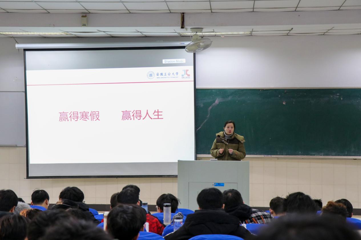 12月27日下午,9999js金沙老品牌在阶梯教室102召开2019级学生期末年级会,会议的主题是“赢得寒假,赢得人生”,2019级学生参加了此次大会。会议由辅导员王琴老师主持。