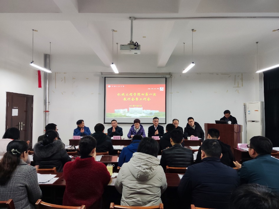 12月22日,9999js金沙老品牌四届一次教代会暨工代会在机械楼四楼404会议室隆重召开。学院党政领导班子及教职工代表参加了会议,校工会主席姚敏应邀出席会议。会议由院党委副书记李克明主持。